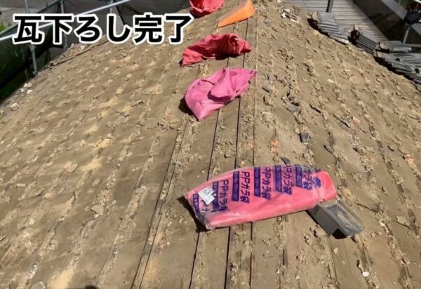 まずは、既存の瓦と葺き土を撤去し、下地から新しく造り直していきます。